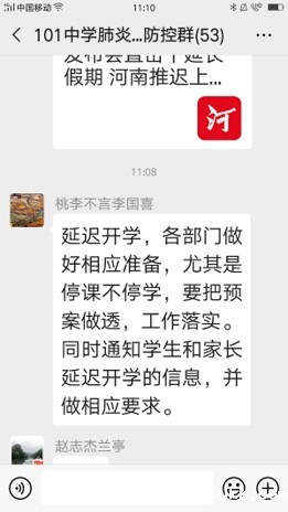 按照上级教育部门要求,学校领导迅速在微信群组织教师发展中心、学生发展中心、信息中心和年级负责人召开会议,商讨“停课不停学”相关要求并通知全体教师和学生。
