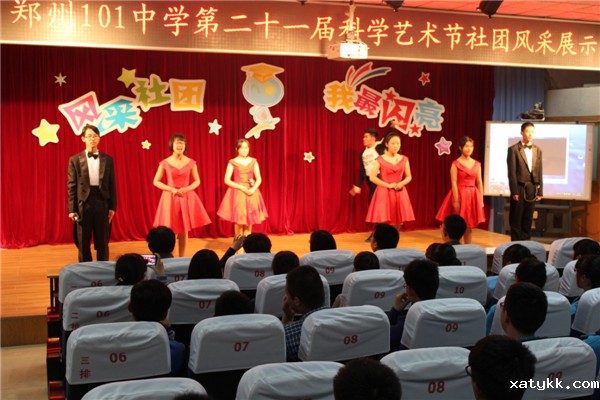 在展示现场,各个社团发挥自身优势为在场师生奉献了一个个精心编排的节目。广播站的诗朗诵《相信未来》融入舞蹈、音乐多重元素,以朴实的语言、饱满的情感抒发了对未来的美好憧憬;心理社的手语舞《我最闪亮》最大限度地发挥社团成员的主动性和参与性,给每一位社员一个展示自我的平台;英语社的歌伴舞《You belong with me》充满异域风情,吉他伴奏,音律灵动,社员们在音乐中舞动青春;动漫社的《cosplay show》带领同学们感受二次元世界;音乐社的歌曲表演 《天籁之音》更是让在场观众领略了音乐的魅力,时而清脆宛如百灵,时而声音浑厚宽广,社员的钢琴独奏更是为节目增色不少;黄河文学社的话剧《在国旗下演讲》将101中学厚重的历史底蕴和一代代扶轮学子的爱国热情在表演中呈现出来,铮铮爱国情感动着在场的每一个人。觉韵演讲朗诵社带来的情景剧《播音课堂》诙谐幽默,同学们表演栩栩如生,引来台下一阵阵的掌声和笑声;光影艺术社更是别出心裁,将荧光棒的闪光效果注入舞蹈当中,充分展示光影魅力。