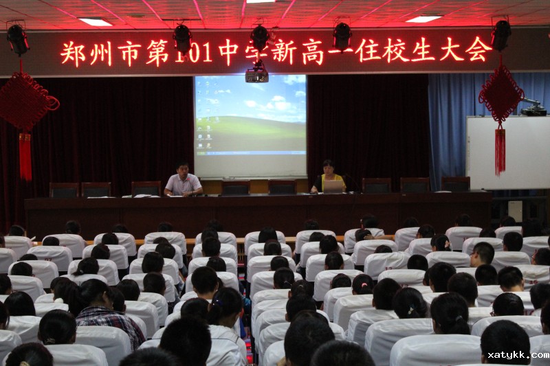 近几年,随着生源扩大,郑州市101中学住校生比率不断增加,截止2015年秋季,住校生已占在校学生的一半以上。为加强我校住校生管理,为学生营造一个安全、整洁的住宿环境,使高一新生更快适应学校生活,学校领导多次到学生宿舍检查工作,提出整改措施。2015826日,政教处、宿管处组织高一年级住校生在阶梯教室开会,就住宿相关问题面对面与学生交流。