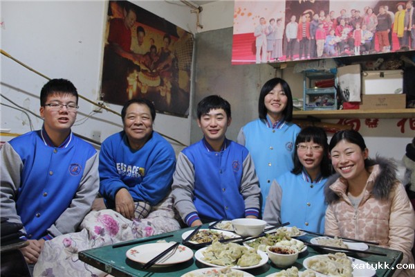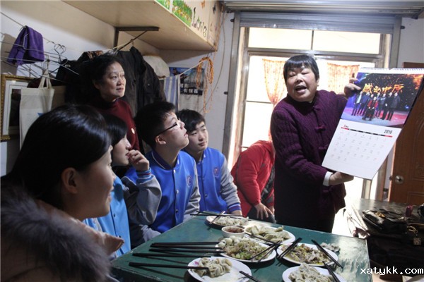 还没进门,大家便听到屋内阵阵的笑声。高叔向同学们介绍着他的邻居和和朋友们:这里有陪伴照顾他快半个世纪的发小樊石头;有他的中学同窗好友——101中学的退休老教师熊蒂;也有认识仅仅一年多的同龄人——知青志愿者。陇海大院的老朋友赵新义一直在厨房忙碌着煮饺子,不一会儿,另一位大院的老邻居常思军来了,陇海大院的居委会主任井勇也来了。“他们几个和我一样,可都是原来老铁一中的学生啊”,高叔动情的说。