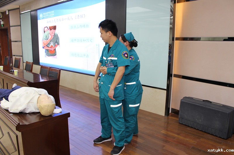 杨主任说:生命力是顽强的,但生命是脆弱的。以此来引导同学们珍爱生命。在整个讲座的过程中同学们表现都很积极,在讲到心肺复苏的环节时,由医院的护士姐姐给同学们进行现场实际操作演示,让同学们能够更直观的看到急救的情景;在讲到海姆立克式急救法时,由医院的两位医护人员进行操作演练,告知同学们在遇到紧急情况时应该怎样正确处理这种情况。这些知识在平时的学习中是接触不到的,但在以后的生活中或许真的可以用到。