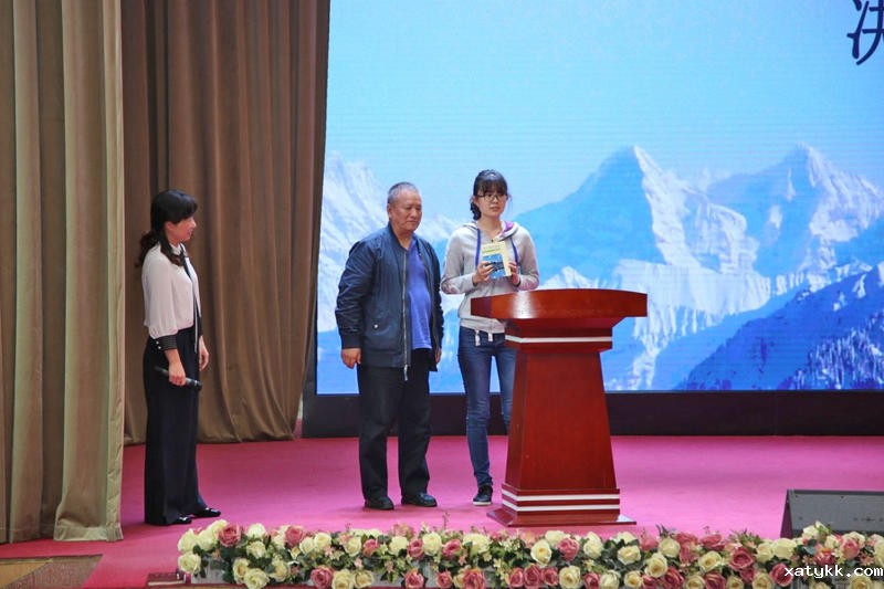 刘恒利老师作为优秀指导教师代表上台发言,并获得由首都师范大学方运加教授赠予的,带有中国科学院院士王元签名的赠书——《数学模型选谈》。