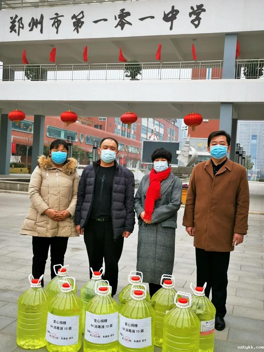 开学前各项防疫物资的准备工作是重中之重。学校一直加强与属地卫生健康部门、疾病预防控制机构、医疗机构的联系,尽最大努力解决好防控疫情所需设备设施等问题,确保口罩、消毒液、医用酒精、手持红外线测温仪等防控物资和设备配备到位。但部分防控物资购买的确存在困难。2月24日下午,在101中学校园里,一幕暖心的画面呈现在我们眼前:高二11班朱康丽同学的家长开车将10桶消毒液捐赠给学校。